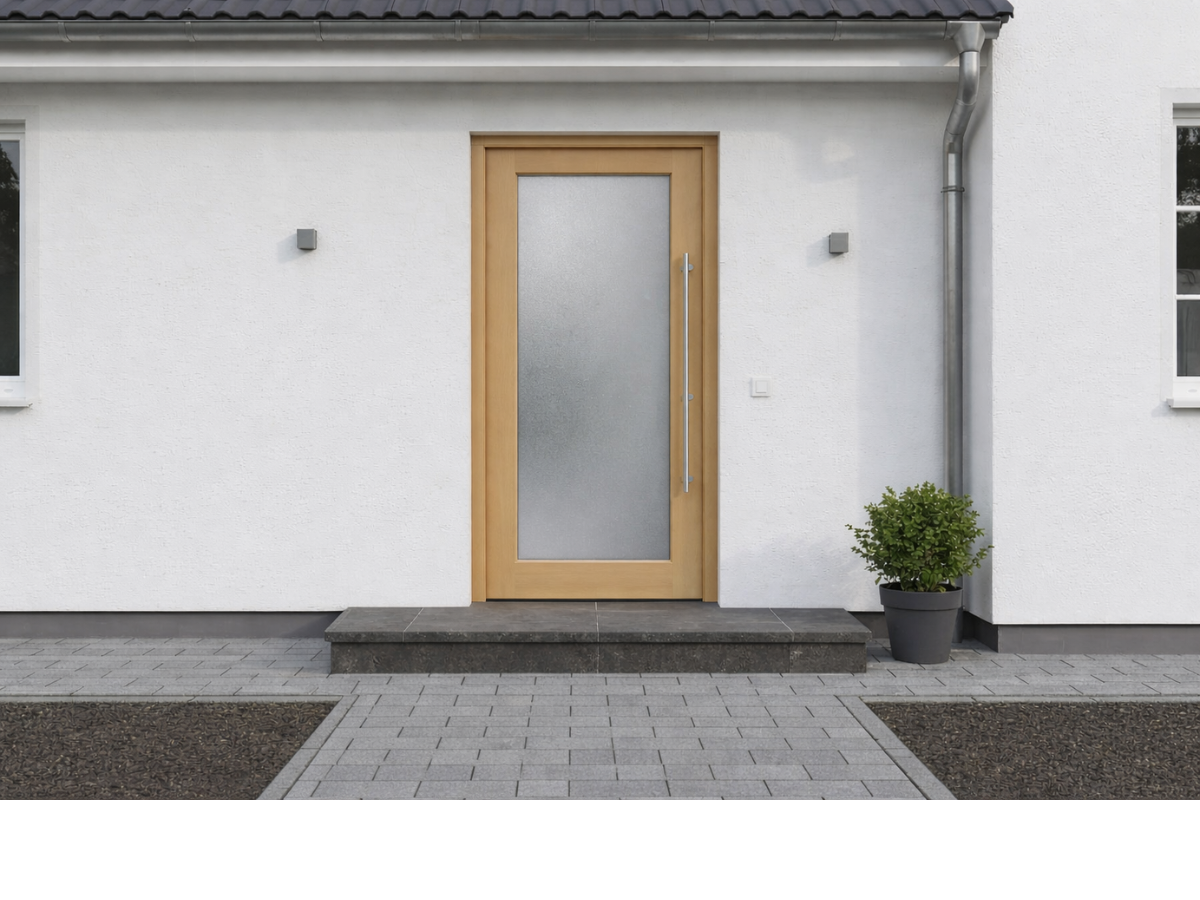 Diese Haustür aus Holz überzeugt durch ihre klare Form und maximale Stabilität. Das geschlossene Türblatt ohne Glas- oder Dekorelemente eignet sich für alle, die Wert auf Sicherheit, Sichtschutz und ein reduziertes Design legen. Ob Kiefer, Meranti oder Eiche: Wählen Sie Holzart, Maße, Oberflächenfarbe und Ausstattung im Konfigurator. Die Tür wird millimetergenau gefertigt und kann lackiert oder lasiert werden – in natürlichen Holzfarben oder einem RAL-Farbton.